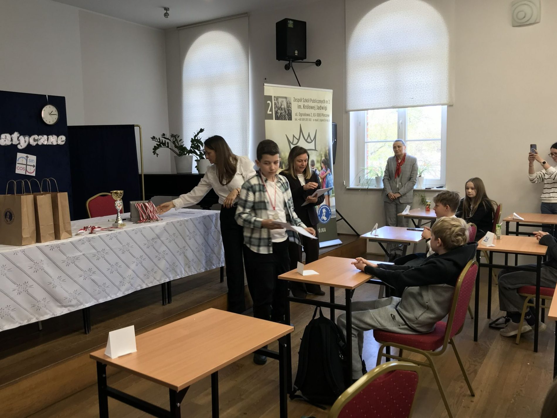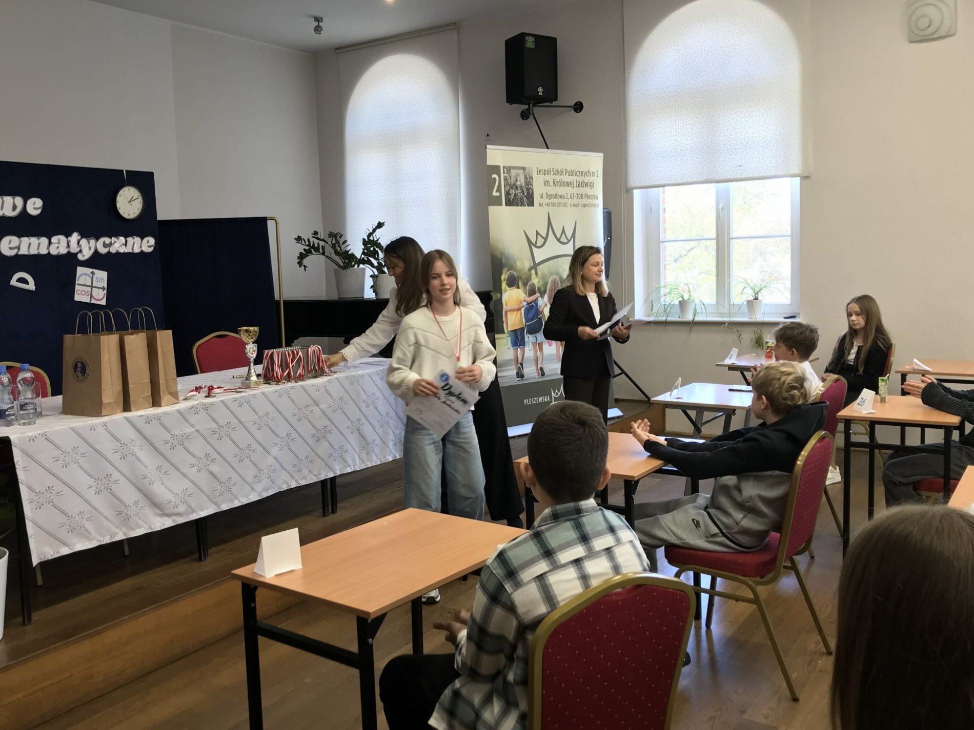 24 kwietnia 2024 r. w Szkole Podstawowej nr 2 im. Królowej Jadwigi w Pleszewie odbyły się IX Powiatowe Zawody Matematyczne dla uczniów kl. V i VI szkół podstawowych, w których udział brały trzyosobowe zespoły z 15 szkół z powiatu pleszewskiego. Z naszej szkoły w zawodach wzięli udział uczniowie klasy szóstej: Mikołaj Jańczak, Szymon Kowalski i Patryk Morawski. Dla naszych uczniów zawody zakończyły się dużym sukcesem, ponieważ Szymon Kowalski zajął 1 miejsce, a Mikołaj Jańczak 2 miejsce.